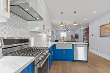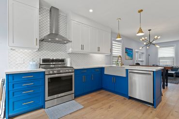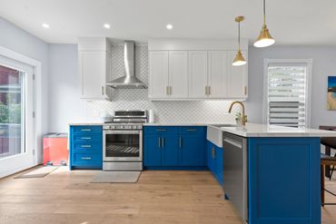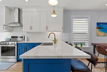 This house was hiding many challenges, including outdated knob and tube electrical wiring and creaking, saggy floors. Our team made sure all fixes below the surface were addressed before giving this two-story home a bright facelift.
